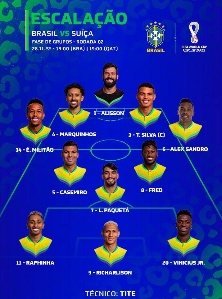 Tite confirma escalação do Brasil com Fred e Eder Militão